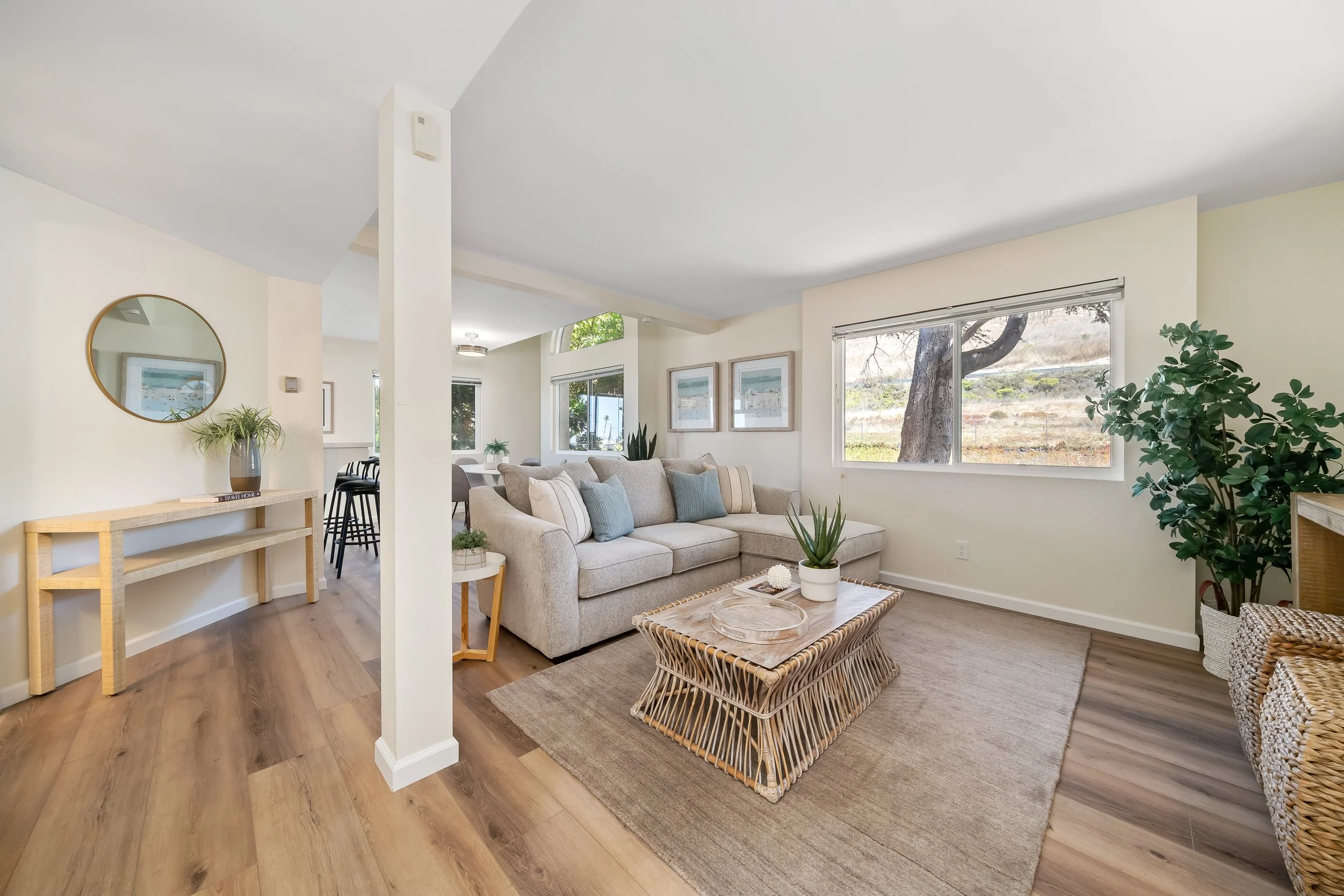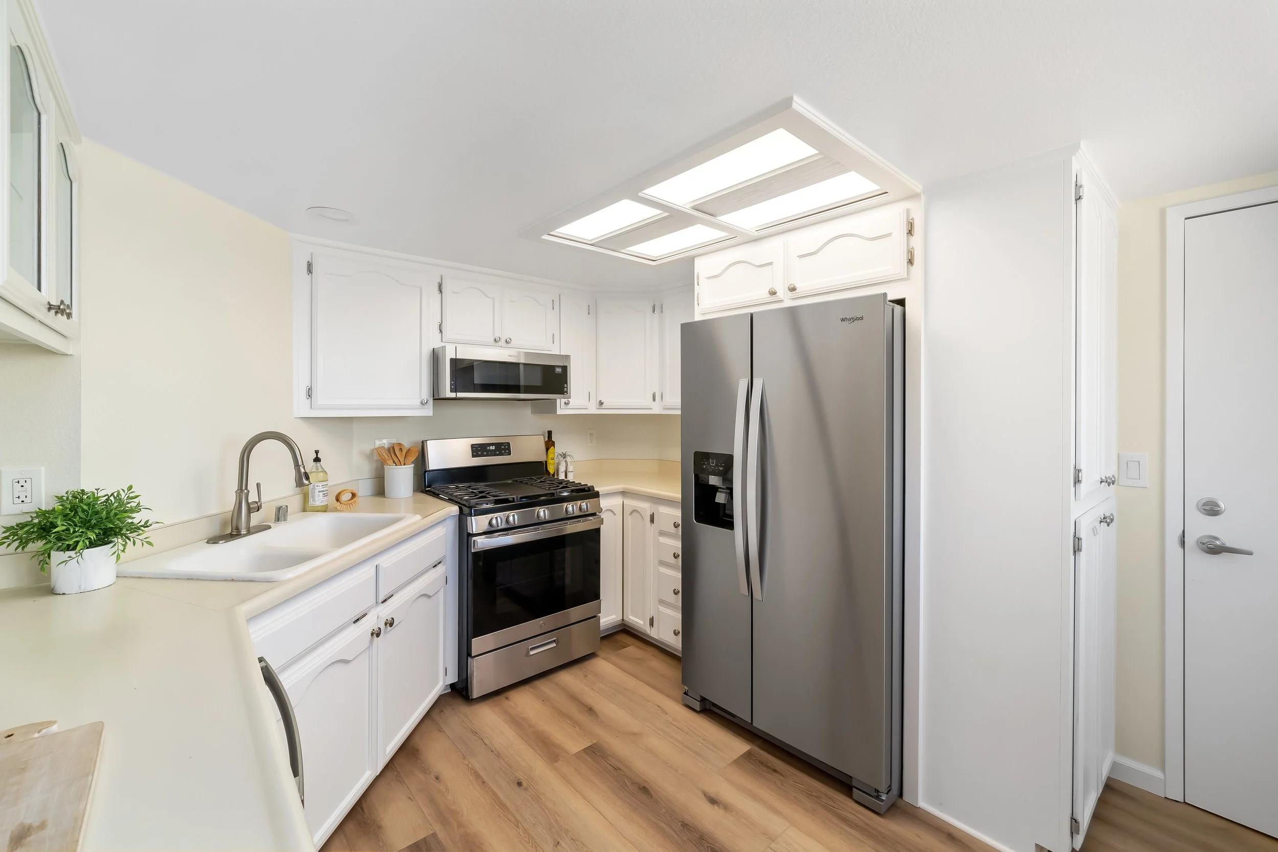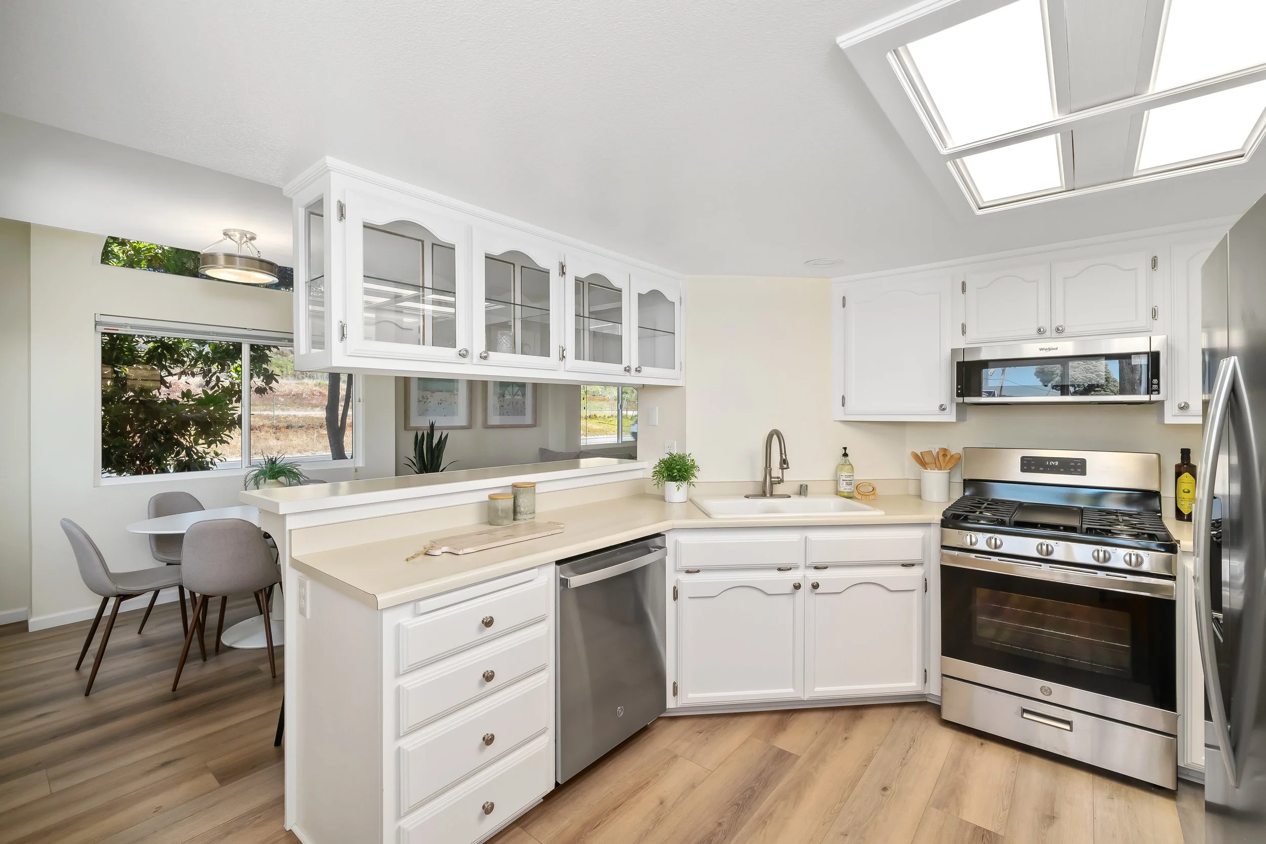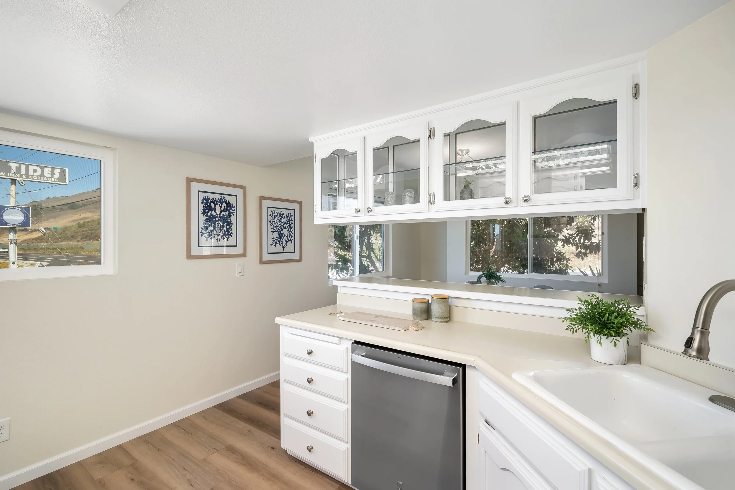 Perfectly situated between the Pacific Ocean and the iconic Highway 1, you’ll enjoy beautiful peek-a-boo ocean views from the kitchen, dining area, and primary bedroom. The interior has been beautifully updated, featuring luxury vinyl plank flooring, new carpets, fresh paint, new door hardware, upgraded light fixtures, and stainless steel appliances.